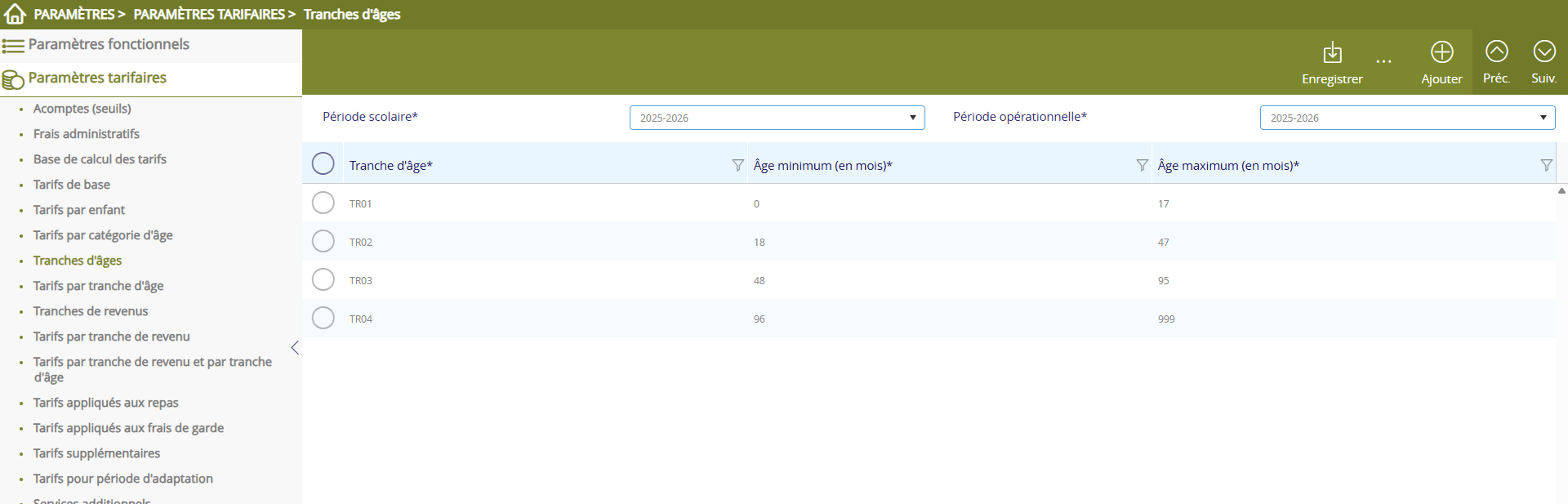 Il est possible d’ajouter une nouvelle tranche d’âge, grâce au bouton identique à celui affiché ci-dessous.